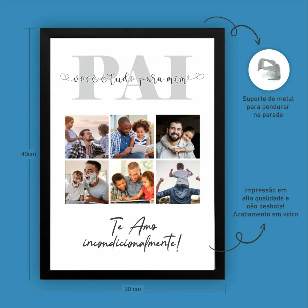 Personalize o quadro do seu jeito, com uma foto ou com várias! Grátis uma frase para acompanhar o quadro.